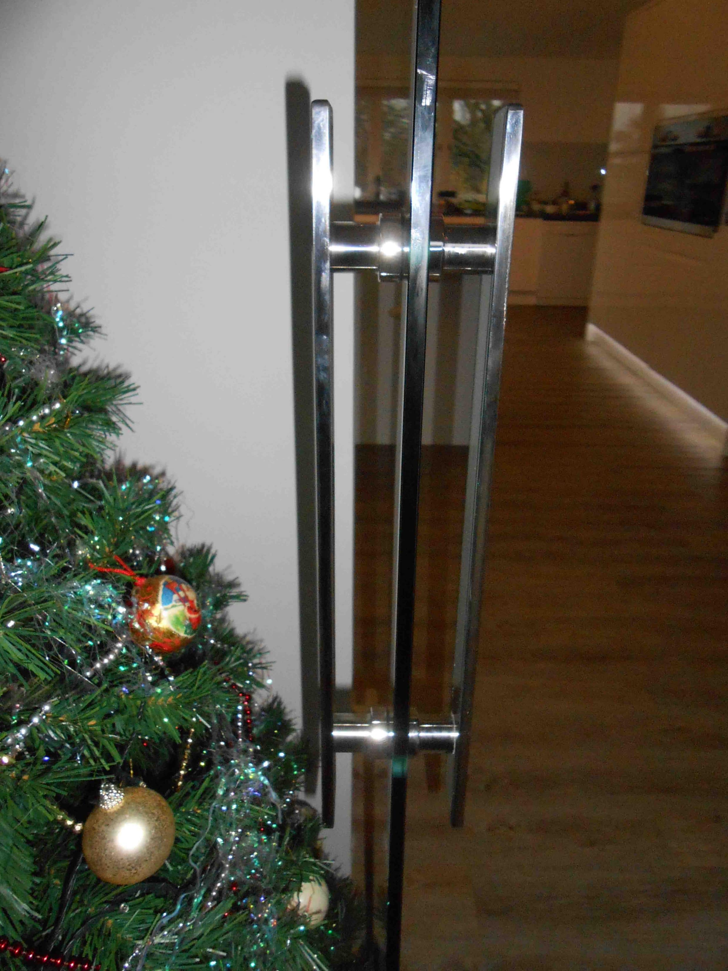 Furthermore, we added a finishing touch in the form of 300mm satin stainless steel door handles on each door, with a minimal projection. At the same time these are elegant, functional and make the doors easy to use Another huge advantage of our doors apart from no visible frame is a completely flush floor.