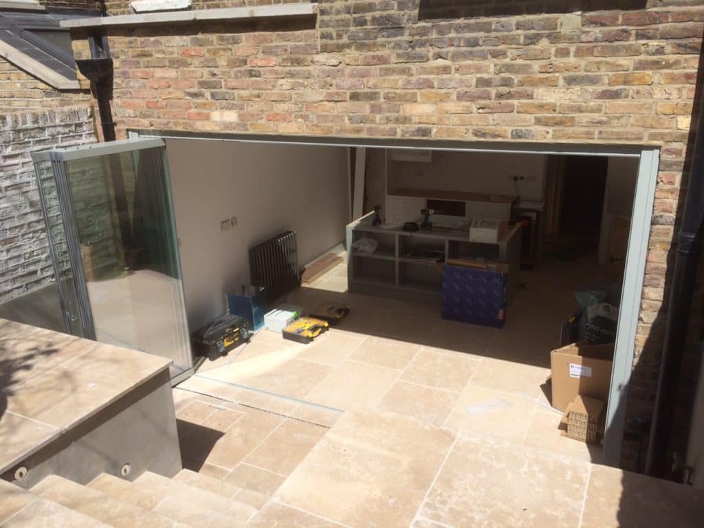 To the downstairs new extension we provided a large set of four panel bifolding doors in a contemporary powder coated finish.  These types of renovation projects are very typical of how homes are being extended to provide larger kitchen, dining and living spaces all with the benefit of bifolding doors.