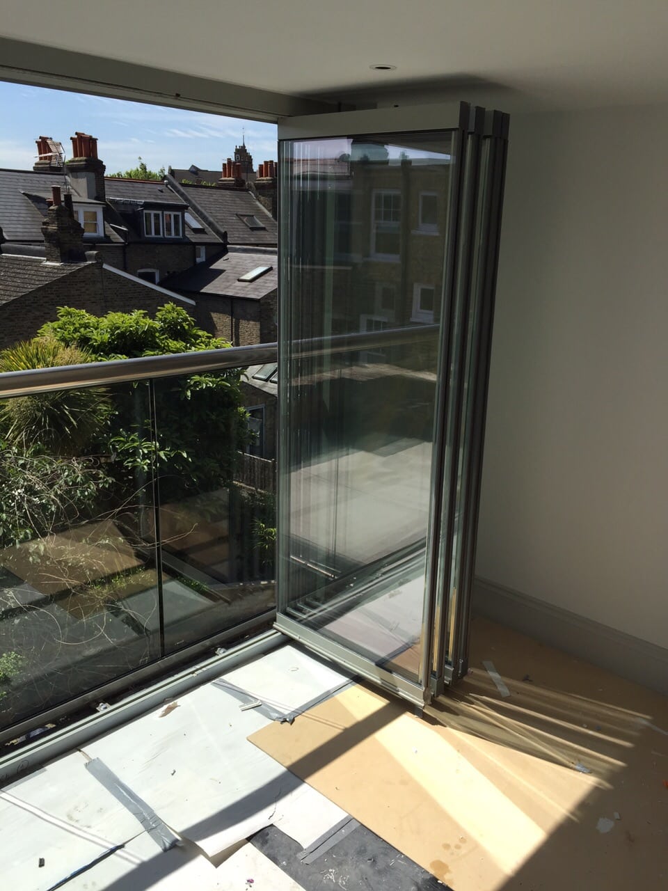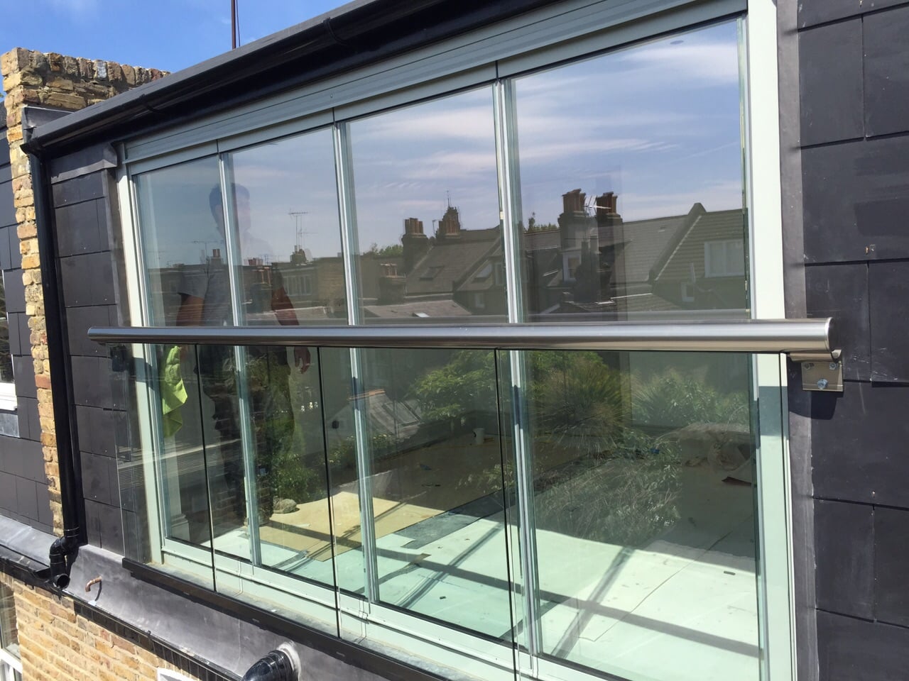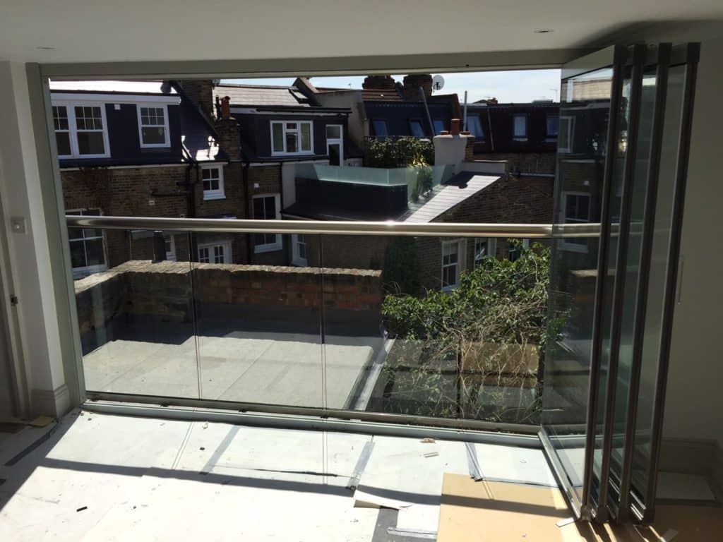 To the upstairs of the property we provided a four pane set of frameless bifolding doors.  Given the location of these they were further enhanced by a contemporary glass balustrade and metal hand rail to create an ultra modern Juliet balcony.