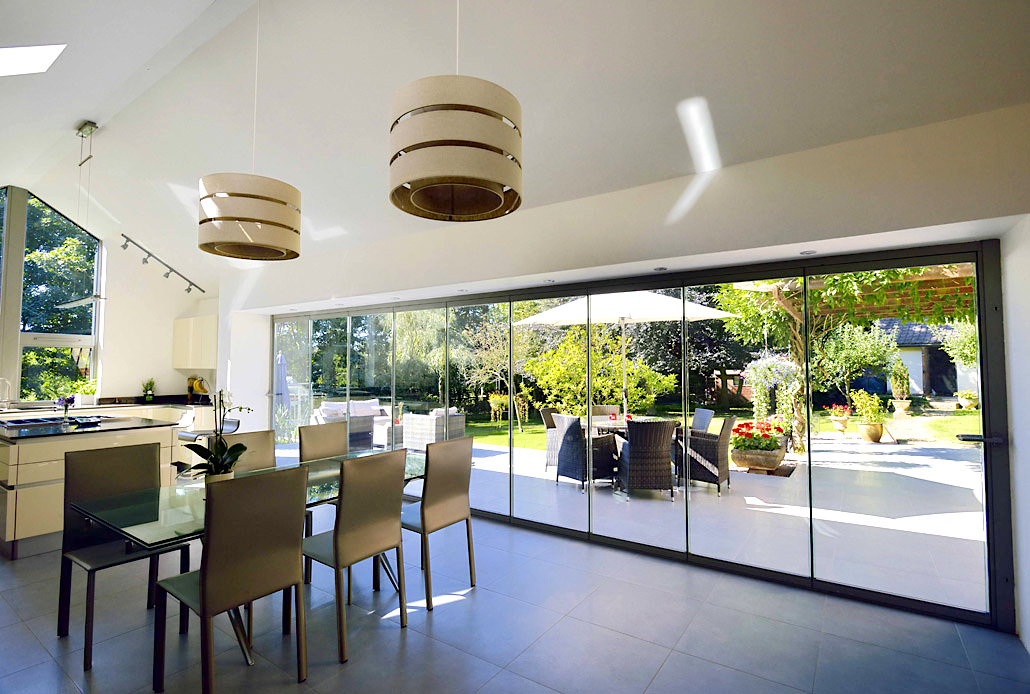 Stylish and versatile frameless glass doors from FGC transform this Stowmarket home, maximising natural light and creating an effortless indoor-outdoor connection. The recessed threshold provides a seamless transition between spaces.
